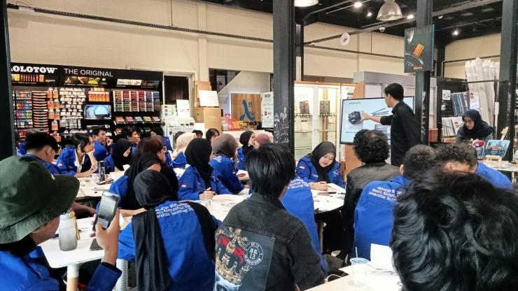 Perwakilan dari Artemedia juga memberikan insight mengenai perkembangan kebutuhan pasar terhadap karya visual yang adaptif, inovatif, dan relevan dengan tren industri kreatif saat ini. Hal ini memperkuat pemahaman mahasiswa bahwa kompetensi teknis harus selaras dengan kebutuhan profesional.